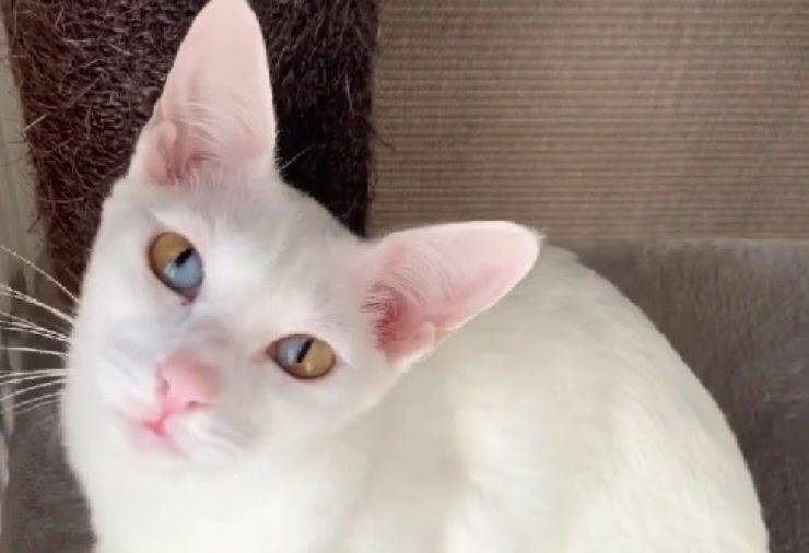 Lui si chiama Olive ed il profilo Instagram che pubblica quotidianamente le sue foto e i suoi video è oddity_olive. È un gatto bianco che ha ciascun occhio diviso esattamente a metà. Nella prima metà ha un colore azzurro e nell’altra un colore marrone chiaro. È impossibile non rimanerne del tutto incantati.