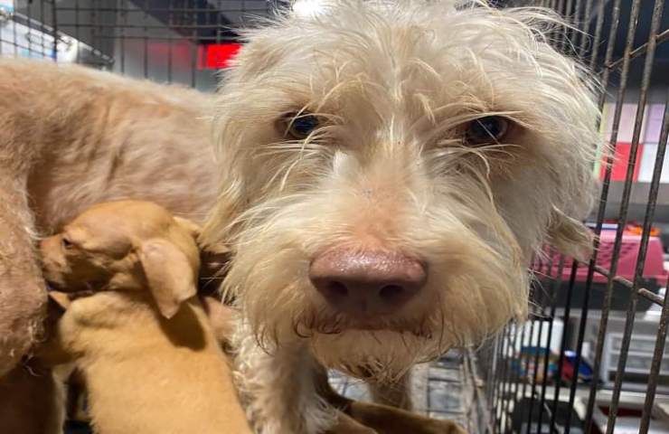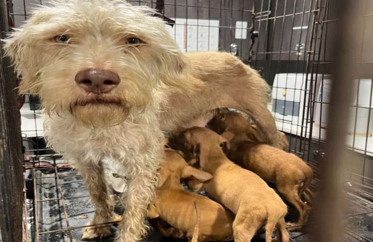 L’uomo ha infatti trovato uno scenario raccapricciante, una povera cagnolina e i suoi otto cuccioli erano stati rinchiusi in una gabbia, le sbarre della gabbia stretta e angusta erano tutte completamente corrose dalla ruggine.