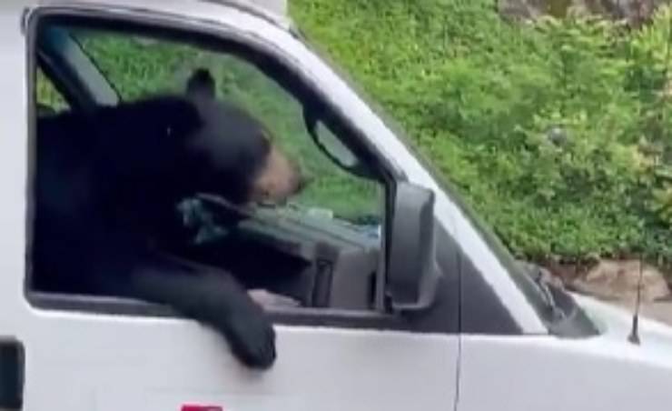 Un orso ha deciso di entrare nel furgone di alcuni operai per rubare loro qualcosa di importante, ecco che cosa ha fatto.