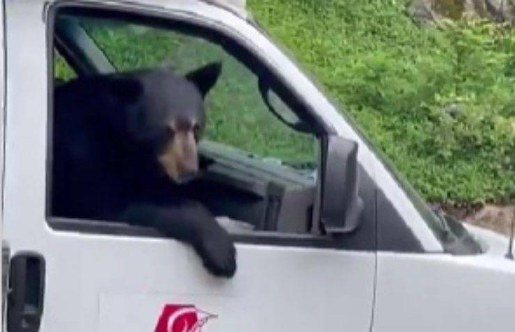 Un orso entra nel furgone degli operai: ciò che accade poco dopo è incredibile