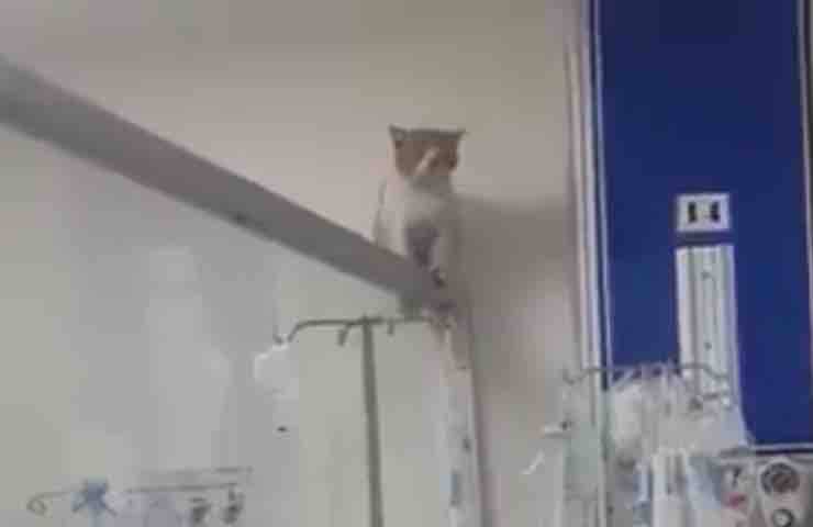 Un gatto riesce ad intrufolarsi incredibilmente in ospedale, tutti restano a bocca aperta e non riescono a capire perché il felino sia lì.
