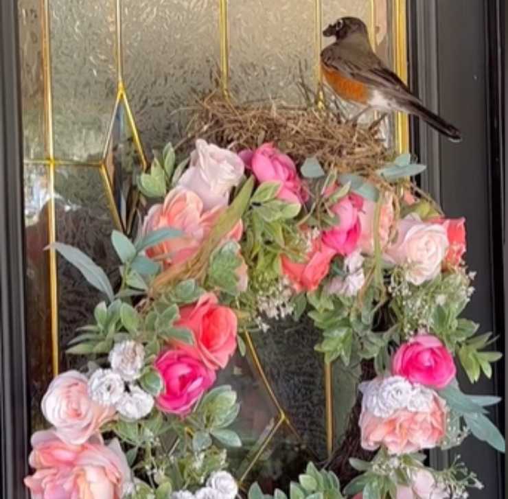 Incontri ravvicinati con la fauna selvatica offrono sempre un’emozione immensa. Che sia una specie di animale di grande taglia o una specie piccolissima, avere la possibilità di vedere degli esemplari selvatici da vicino sarà sicuramente meraviglioso. Così è stato ad esempio per una coppia statunitense che una mattina di poche settimane fa ha avuto una sorpresa davanti all’ingresso della loro abitazione. Sulla festiva ghirlanda di fiori appesa alla porta di casa, la coppia ha infatti trovato un ospite piuttosto insolito: un uccellino che aveva appena costruito il suo nido.