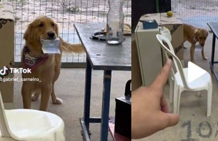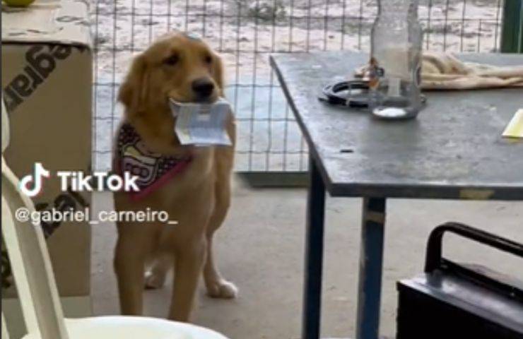 Spopola su TikTok il divertente video della dispettosa cagnolina Golden Retriever ripresa mentre ruba a un dipendente del suo padrone lo stipendio nel giorno di paga.