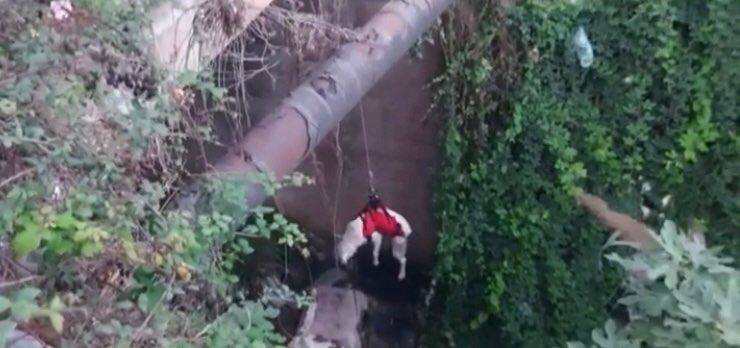 I passanti e i vicini hanno sentito i pianti del cagnolino e sono riusciti ad individuare la sua posizione. Impossibile raggiungerlo senza l’aiuto dei Vigili del Fuoco che con le attrezzature giuste, si sono riusciti a calare dal ponte per avere accesso al quattro zampe. Non è stato tutto però così semplice.