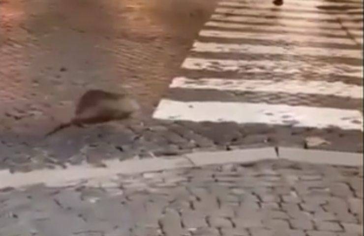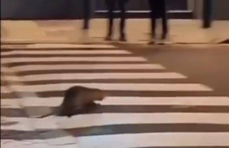 Roma, Isola Tiberina; tarda serata. Le strade della capitale sono illuminate dalla luce dei lampioni che si riverbera sui volti di cittadini e turisti. A camminare per il centro della città però non sono solo gli esseri umani. Davanti agli sguardi stupiti di pedoni e automobilisti, infatti, una nutria attraversa la strada passando sulle strisce pedonali. Il filmato che ritrae questo roditore è stato realizzato da una persona che si è trovata ad assistere alla scena e ha poi condiviso le immagini sui social network.