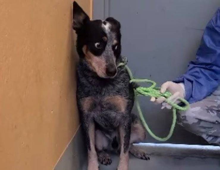 Il cucciolo abbandonato è paralizzato dalla paura del nuovo posto nel quale si trova. La tristezza che trasmette fa stringere il cuore