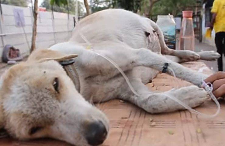 Ma quando i soccorritori di animali del Rescue and Rehabilitation of Stray Animals sono venuti a conoscenza del caso, hanno subito capito che il problema era molto più serio di una semplice gravidanza, il cane infatti soffriva di ascite, una condizione che comporta l’accumulo di liquido negli spazi all’interno dell’addome.