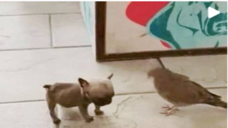 Il piccione sale sulla schiena del cagnolino, la scena è esilarante -VIDEO
