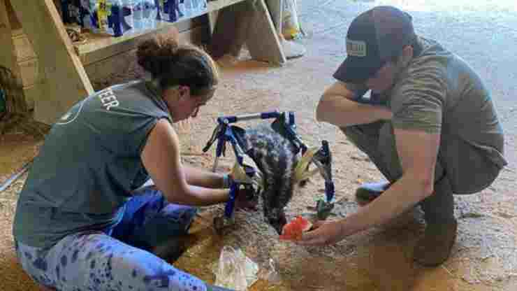 Grazie alla Walkin’ Pets, questo piccolo emù può camminare di nuovo, con una nuova sedia a rotelle realizzata appositamente per lui.