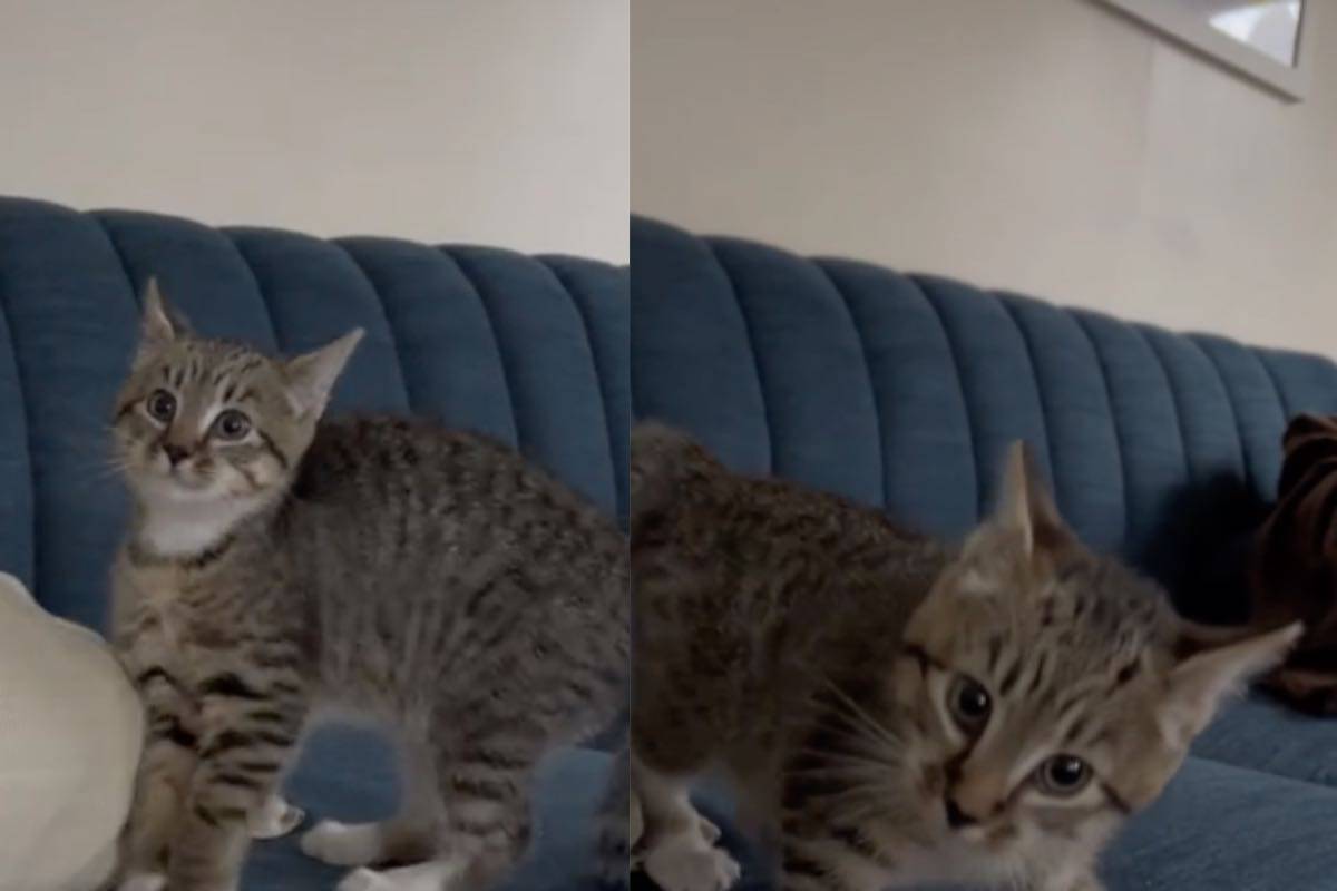 Osservando il piccolo micio ci accorgiamo che il suo comportamento è del tutto istintivo. Il gattino è inconsapevole del fatto che sta imitando i suoi fratellini a quattro zampe, eppure c’è da dire che il suo tentativo di far parte del gruppo sia ben riuscito. “È bilingue“, scherza un utente riferendosi alla sua duplice abilità di comunicare con la sua umana di riferimento.