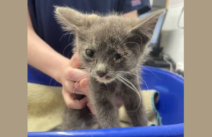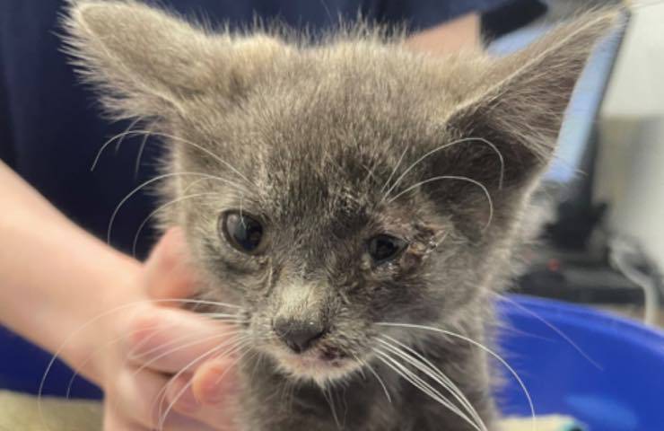 Un piccolo gattino – dal pelo grigio chiaro e di appena otto settimane di vita – è stato ritrovato in strada preda delle tipiche sofferenze dovute a una malattia che avrebbe presto intaccato il suo organismo. Abbandonato dal suo proprietario e destinato, di giorno in giorno, al repentino peggioramento delle sue condizioni, il micio avrebbe rischiato di non farcela.