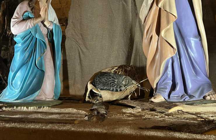 Il gattino è stato trovato all’interno della mangiatoia del presepe monumentale in cerca di un riparo dal freddo e dalla pioggia. Il posto più caldo lo ha trovato in mezzo alla paglietta dove di solito giace la figura del bambin Gesù. Ovviamente il micetto non è passato inosservato e molte foto che lo ritraggono sono diventate virali.