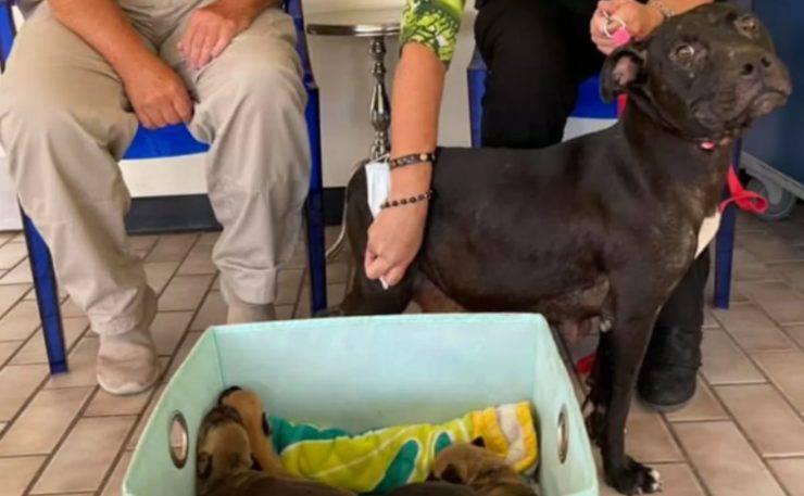 La poliziotta che ha salvato la mamma pitbull, non è arrivata in tempo per il parto. Durante la sua consueta visita alla cagnolina infatti, Marnie ha trovato una bellissima sorpresa: 8 cuccioli erano nati in sua assenza. Ma quei pelosetti non potevano rimanere assolutamente lì.
