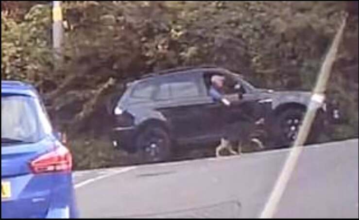 L’autista del Suv che portava un cappello da baseball bianco è stato ripreso mentre incitava il cane un pastore tedesco a stare al passo con la velocità del veicolo. I ragazzi notando la scena hanno ripercorso la strada e si sono incolonnati dietro alla vettura in modo tale da non essere notati e riprendendo la scena.
