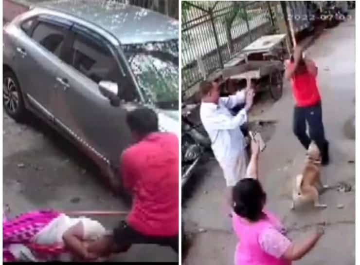 #WATCH | Delhi: 3 members of a family&their pet dog injured after being hit by a neighbor with an iron rod in Paschim Vihar. It happened after the dog allegedly barked at him. FIR lodged.