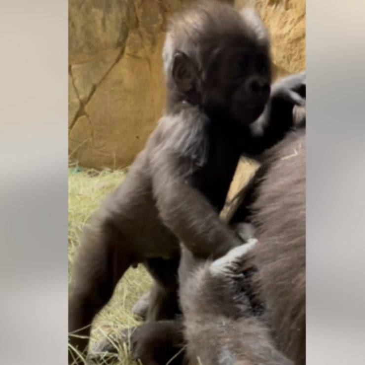 Dallo zoo del Texas arrivano le incredibili immagini dei primi passi del cucciolo di gorilla: il piccolo Bruno si alza in piedi con l’aiuto della dolce mamma Gracie.