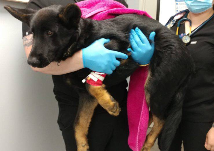 Dopo aver investito accidentalmente il proprio cane, i proprietari lo hanno condotto dal veterinario per farlo visitare. Il pastore tedesco era gravemente ferito.