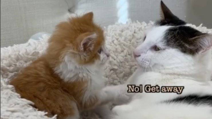 L’anziano gatto scontroso ha provato con tutte le sue forze ad ignorare il cucciolo ma cede e quello che succede dopo è meraviglioso – VIDEO.
