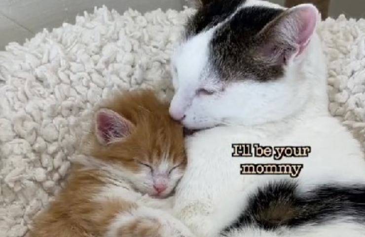 Grazie alla sua mamma, Joey ha potuto conosciuto Badger, un gattino bianco a macchie rosse, molto piccolo e anche estremamente carino. Nel video condiviso attraverso TikTok, l’anziano gatto appare in un primo momento rilassato nella sua cuccia fino a quando Grace non appoggia accanto a lui il tenero micino.