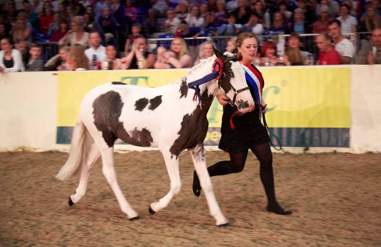 Il puledro di razza piebald, chiamato dalla RSPCA Gizmo, è stato abbandonato a Halstead, nell’Essex (Regno Unito), incapace di reggersi in piedi e senza una madre nelle vicinanze. Ma contro ogni previsione, il cucciolo ha fatto un debutto vincente sul ring dell’Equifest.
