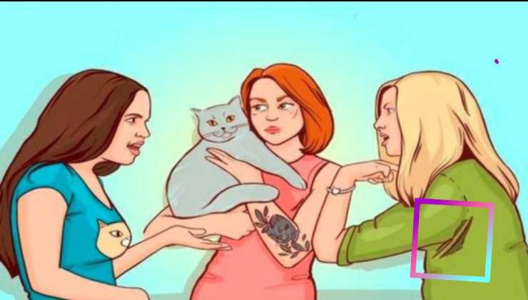 Guarda qui l’immagine del rompicapo visivo nell’immagine che troverai qui sotto dovrai identificare quale delle tre ragazze è la vera proprietaria del gatto. La donna al centro ha trovato il gatto smarrito appartenente a una delle altre due ragazze, ma solo una delle due è la proprietaria originale. Guarda attentamente prima di dare una risposta.