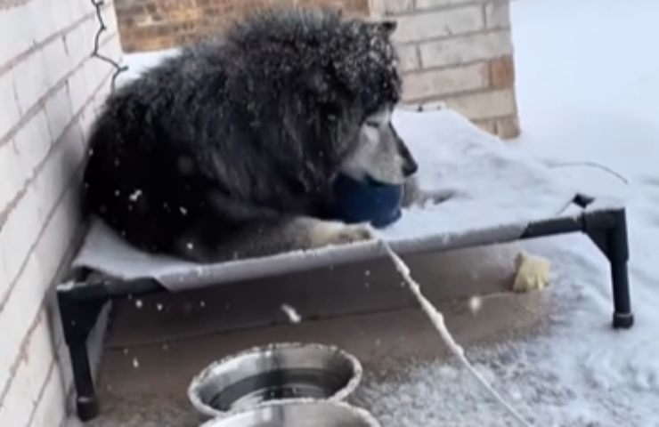 Infatti è chiaro che questo cane ami il freddo, quasi senza accorgersi di essere interamente avvolto dalla neve, e che addirittura riesca a dormire avvolto su se stesso, accanto alla sua ciotola. A nulla dunque valgono le preghiere della padrona come ‘Puoi entrare almeno per un’ora?’, quasi a voler cercare un compromesso: siamo certi che il suo cane resterà lì dov’è, senza cambiare idea.