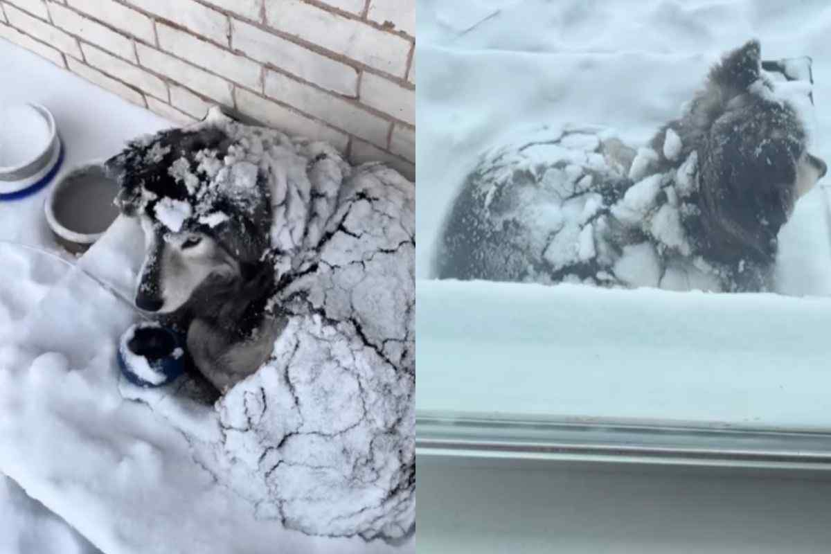 Ma dall’atteggiamento del quattro zampe pare proprio che il freddo non sia un problema: è chiaro che si tratti di una tra le razze di cani che amano la neve: lo si capisce non solo dai colori e dalle caratteristiche tipiche del Siberian Husky (ed è probabile che appartenga proprio a questa razza, anche se non è specificato) ma soprattutto dalla folta pelliccia, che sembra creare uno strato impermeabile che non lascia penetrare la neve.
