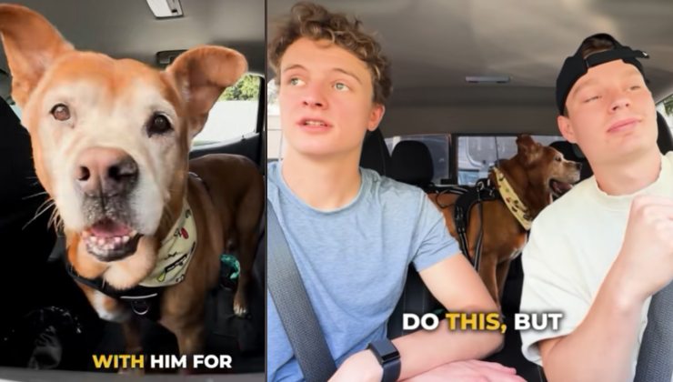 Il cagnolino Jones insieme ai due ragazzi che hanno realizzato i video (Screenshot video TikTok “The Dog Guys” – amoreaquattrozampe.it)