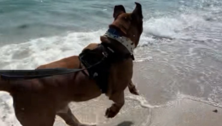Il cane Jones corre felice in riva al mare (Screenshot video TikTok “The Dog Guys” -amoreaquattrozampe.it)