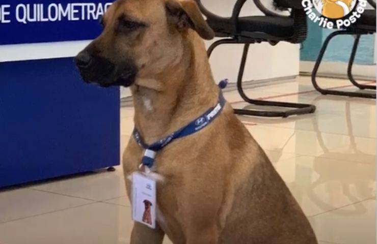 La storia di un cagnolino che da randagio ha trovato una famiglia e un “lavoro”: il cucciolo è stato assunto da una concessionaria di auto.