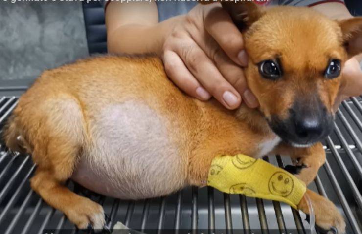 Una ragazza ha salvato la vita a un cucciolo di cane: abbandonato in strada con la pancia ingrossata, la piccola non riusciva più a respirare.