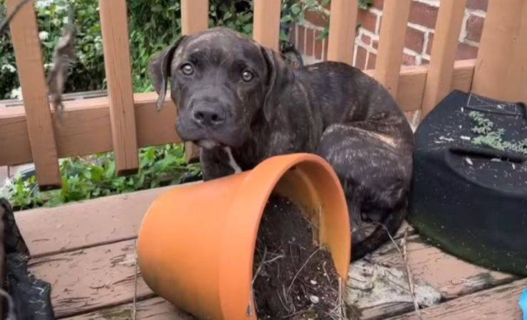 Rientrata a casa, una donna ha notato uno strano disordine nel suo portico e la sua prima reazione è stata quella di credere che all’interno di casa sua ci fosse un ladro. Dopo i primi attimi di paura, non sapendo cosa doversi aspettare, la donna ha notato una piccola macchia nera dietro un vaso rovesciato e da lì la piacevole scoperta. Quello che credeva fosse un malvivente era invece un piccolo cucciolo nascosto e spaventato che si era intrufolato nel portico della casa per cercare riparo dalla strada e un po’ di cibo con cui rifocillarsi.