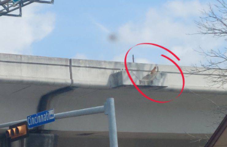 Il luogo scelto dal micetto, però, non era in alcun modo sicuro: il quattro zampe sarebbe potuto cadere da un momento all’altro dal cavalcavia, finendo in mezzo alle macchine, rischiando di essere investito e di causare un incidente prendendo alla sprovvista gli automobilisti che avrebbero cercato di evitarlo.