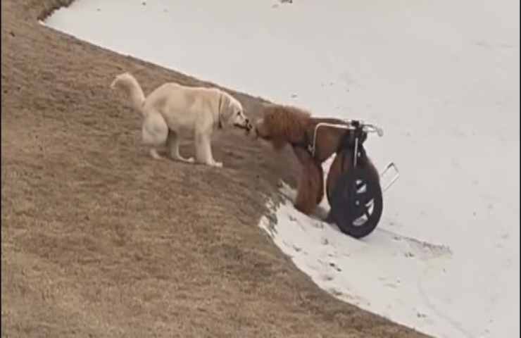 Milioni di utenti sono infatti rimasti colpiti dalla tenerezza dei due cuccioli, uno dei quali costretto in “sedia a rotelle” che mentre si dirigevano in spiaggia hanno avuto un piccolo incidente di percorso che ha però dimostrato, ancora una volta, come i cani possano essere in grado di mostrare comportamenti molto più umani di quanto si possa immaginare.