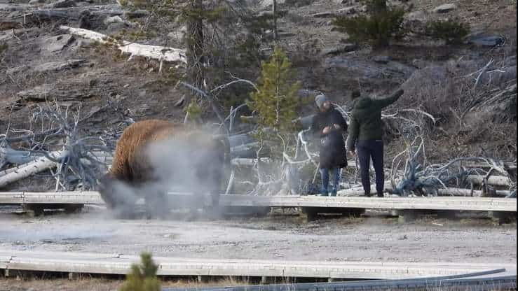 L’uomo e la donna che non sono stati identificati hanno infatti pensato di avvicinarsi al grosso bisonte vicino al nel famoso geyser del parco, Old Faithful, il loro comportamento sprezzante ha messo in pericolo non solo loro stessi ma anche tutte le persone nei dintorni che se l’animale si fosse infuriato avrebbero subito la sua ira.
