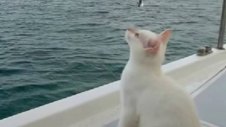 Il gatto di nome Rusty non è un animale come gli altri, la sua passione infatti è l’acqua e ama fare vela insieme alla sua mamma – VIDEO.