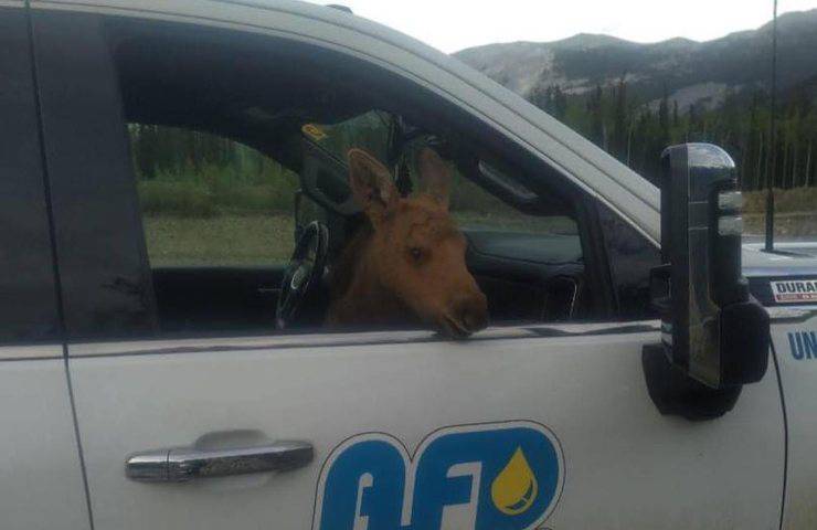 Mark Skage, stava tornando dal lavoro, quando ha avvistato il piccolo alce abbandonato che vagava sul ciglio della strada nella Columbia Britannica. Preoccupato, ha accostato il veicolo e fatto salire il cucciolo sul suo camion, poiché aveva notato che il piccolo era inseguito da un orso nero. “Era lì a 50 metri che aspettava“, ha scritto Mark in un post su Facebook mentre raccontava l’intera vicenda. Non poteva lasciarlo lì in balia del predatore, perciò l’ha caricato sul camion a lavoro per poi dirigersi in città a chiedere aiuto.