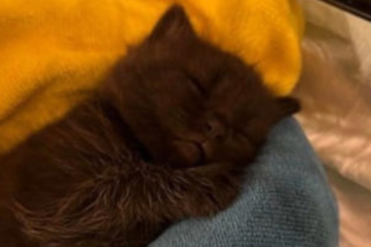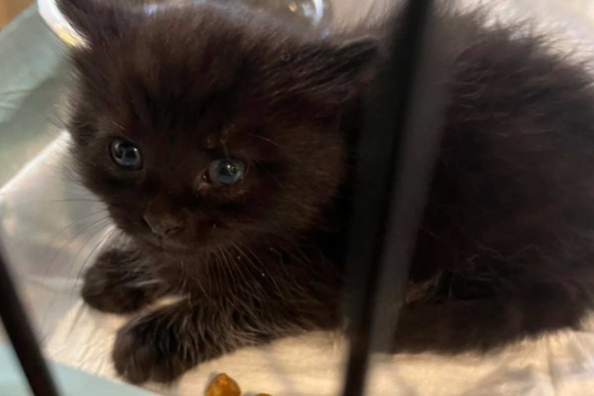 Il piccolo gatto nero River: al sicuro dopo il salvataggio