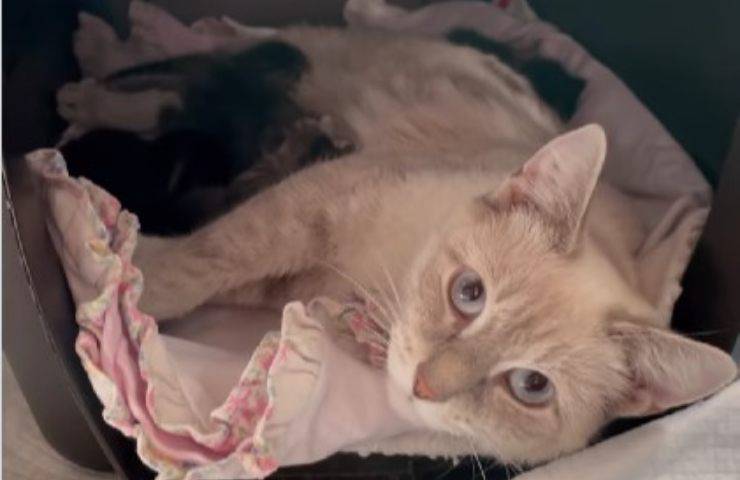 La ragazza non aveva nessuna esperienza con gattini piccoli appena nati e quando ha notato che uno dei cinque piccoli era in difficoltà si è attivata subito per cercare di risolvere il problema. Così ha assistito la neomamma e lei non poteva essere più sollevata nel riceve quell’aiuto, riuscendo a sfamare tutte e cinque le boccucce.