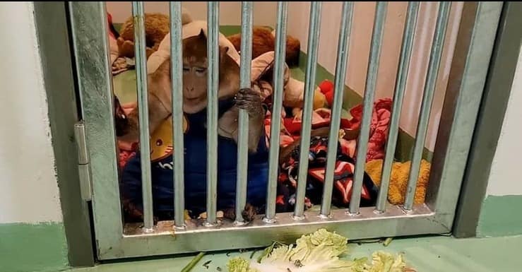 L’uomo ha tenuto la scimmia come animale domestico illegalmente e gli ha permesso di aggirarsi per il mercato dove i passanti lo nutrivano con ogni sorta di cibo.