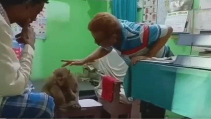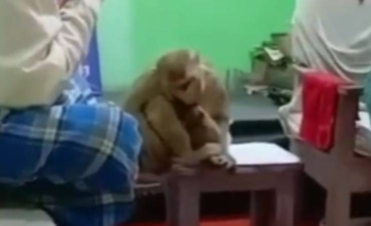 Il dottore responsabile della clinica ha notato che la scimmia fuori dal suo stabilimento. La creatura aveva una ferita alla testa e il suo piccolo ne aveva una alla gamba. Il medico ha quindi fatto segno alle scimmie di entrare. Lì, con il suo cucciolo stretto al petto, la scimmia si è seduta tranquillamente nel tavolino della sala del medico, mentre l’uomo offriva le cure sia a lei che al suo piccolo.