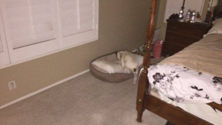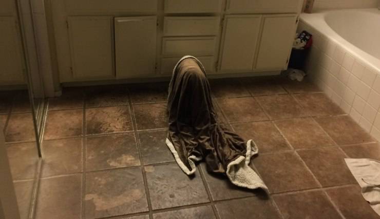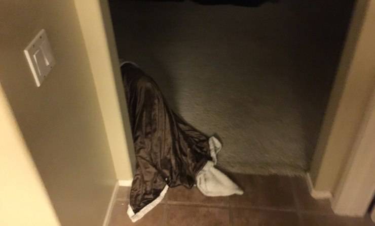Si trattava della loro cagnolona che si aggirava per la casa con una coperta addosso. Sembrava un fantasma e si muoveva come se non ci fosse nulla di strano. Ha bevuto dalla sua ciotola e poi è tornata a dormire nella sua cuccia nella camera da letto.