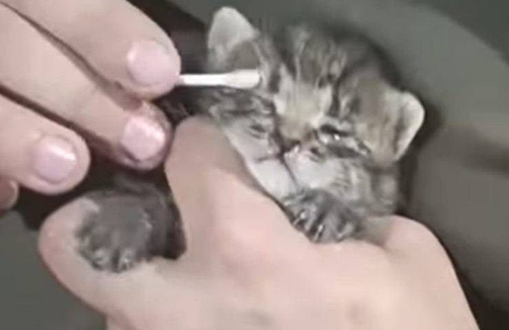 Come mostrato dal filmato condiviso su YouTube, il soldato, subito dopo aver trovato il cucciolo di gatto, se ne è preso cura. Le immagini testimoniano con quanta premura e delicatezza l’uomo prenda in braccio il micetto e gli pulisca delicatamente gli occhi con dei tamponi di cotone. Grazie alle cure riservategli, il piccolo è riuscito a riaprire gli occhi; ha bevuto il latte e si sta rimettendo in salute.