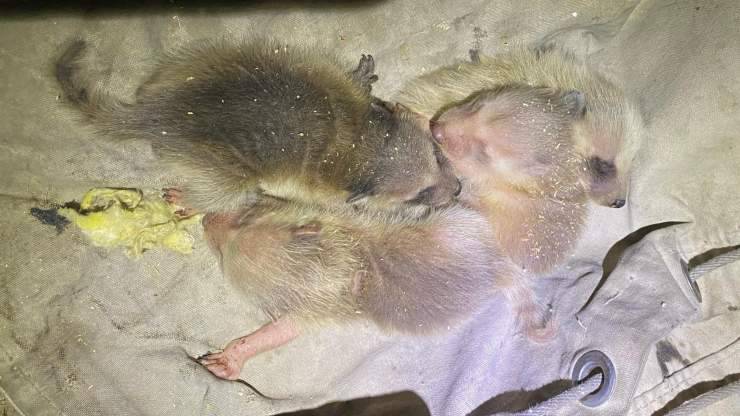 Per controllare meglio la situazione, la donna ha provveduto a contattare il controllo della fauna selvatica. Giunta sul luogo, la squadra si è recata in soffitta e ha notato che qualcosa aveva graffiato e masticato le tegole e il compensato. Dopo aver sfondato un muro, hanno trovato i responsabili: una tenera famiglia di procioni composta da quattro cuccioli che, rannicchiati insieme, cercavano di riscaldarsi.