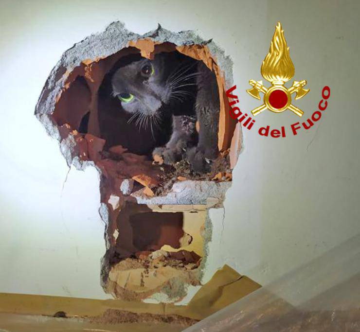 Avevano iniziato a sentire uno strano rumore provenire da dentro il muro. Con l’aiuto dei Vigili del Fuoco sono riusciti salvare l’animale.