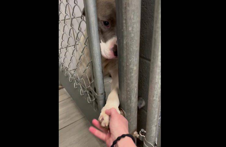 Dopo il ricovero, il cane si sente solo e appena chiunque gli si avvicina, tende la zampa attraverso le sbarre per cercare il contatto – VIDEO.