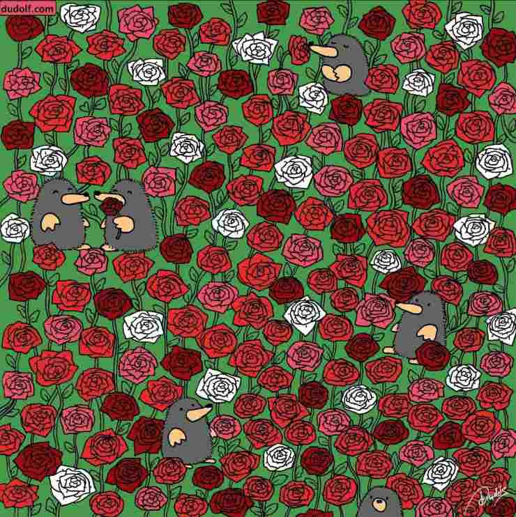 Lo strepitoso vignettista The Dudolf in occasione di San Valentino ovvero la festa degli innamorati ha infatti realizzato una vignetta dove alcune talpe si trovano in uno strepitoso roseto. ma all’interno di questa figura sono stati nascosti ben 3 cuori riuscirete a trovarli nel tempo stabilito?