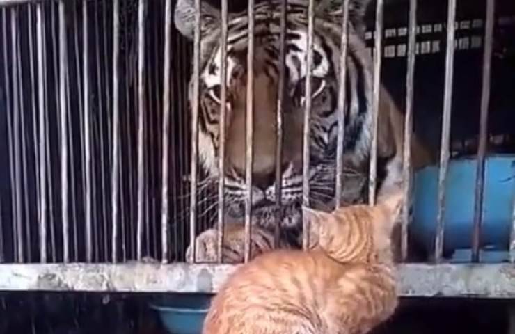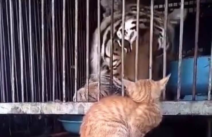Ma come fa un essere così imponente ad avere timore di un gatto? Il video sta circolando ormai da tempo sui vari social network, arrivando fino a TikTok dove lo ha postato l’utente @cutetiger231 che, come si evince dal nome, il suo profilo posta video di tigri alle prese con la loro vita quotidiana e mentre interagiscono con altri animali o umani.