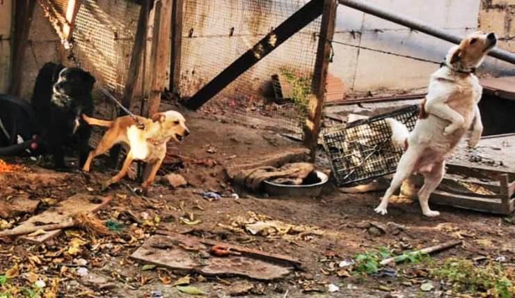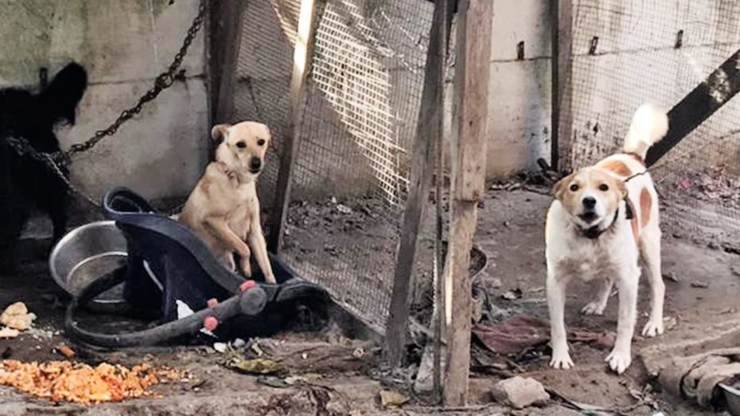 Le Guardie Zoofile di Oipa della sezione di Napoli sono arrivate giusto in tempo. Dopo una segnalazione avvenuta dei giorni scorsi, una volta sul posto hanno trovato i cani, due femmine e un maschio, attaccati a una catena di un metro. Le condizioni in cui vivevano era di degrado più assoluto.