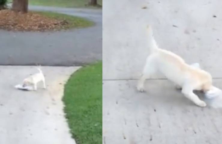 Gli inesauribili tentativi di un cucciolo di Labrador Retriever – messi appunto dal fido per raggiungere l’uscio della propria abitazione – hanno conquistato il pubblico in rete. Il piccolo cane protagonista della clip si trova in un quartiere residenziale e porta con sé un importante bottino. Stando al parere degli utenti: il suo gesto sarebbe la prova di una dolcezza senza precedenti. Il video, condiviso su YouTube da “Haters Clips” mostra loro come, in una mattinata particolarmente uggiosa, il cagnolino tenti in ogni modo di interfacciassi con un oggetto che – però – avrebbe il doppio del suo peso.